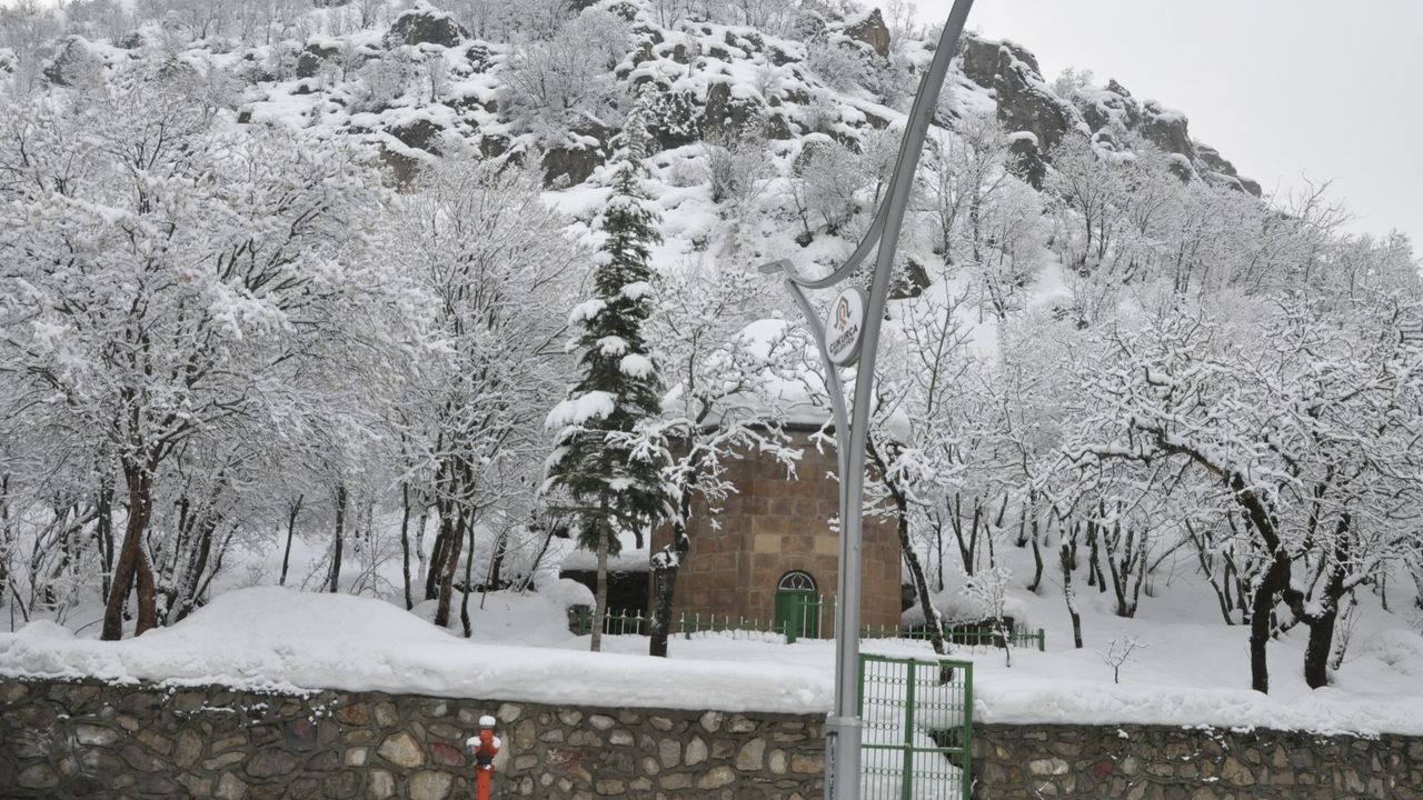 Yağışla birlikte ilçe merkezi ve çevresindeki dağlık alanlar beyaz örtüyle kaplandı.