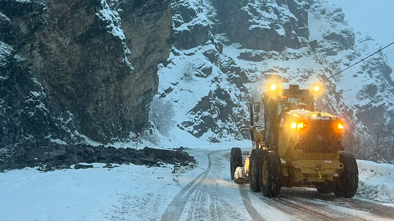 Bölgede kar yağışının etkisini sürdürdüğü öğrenilirken, yetkililer sürücüleri buzlanma ve taş düşmesi ihtimaline karşı dikkatli olmaları konusunda uyardı.