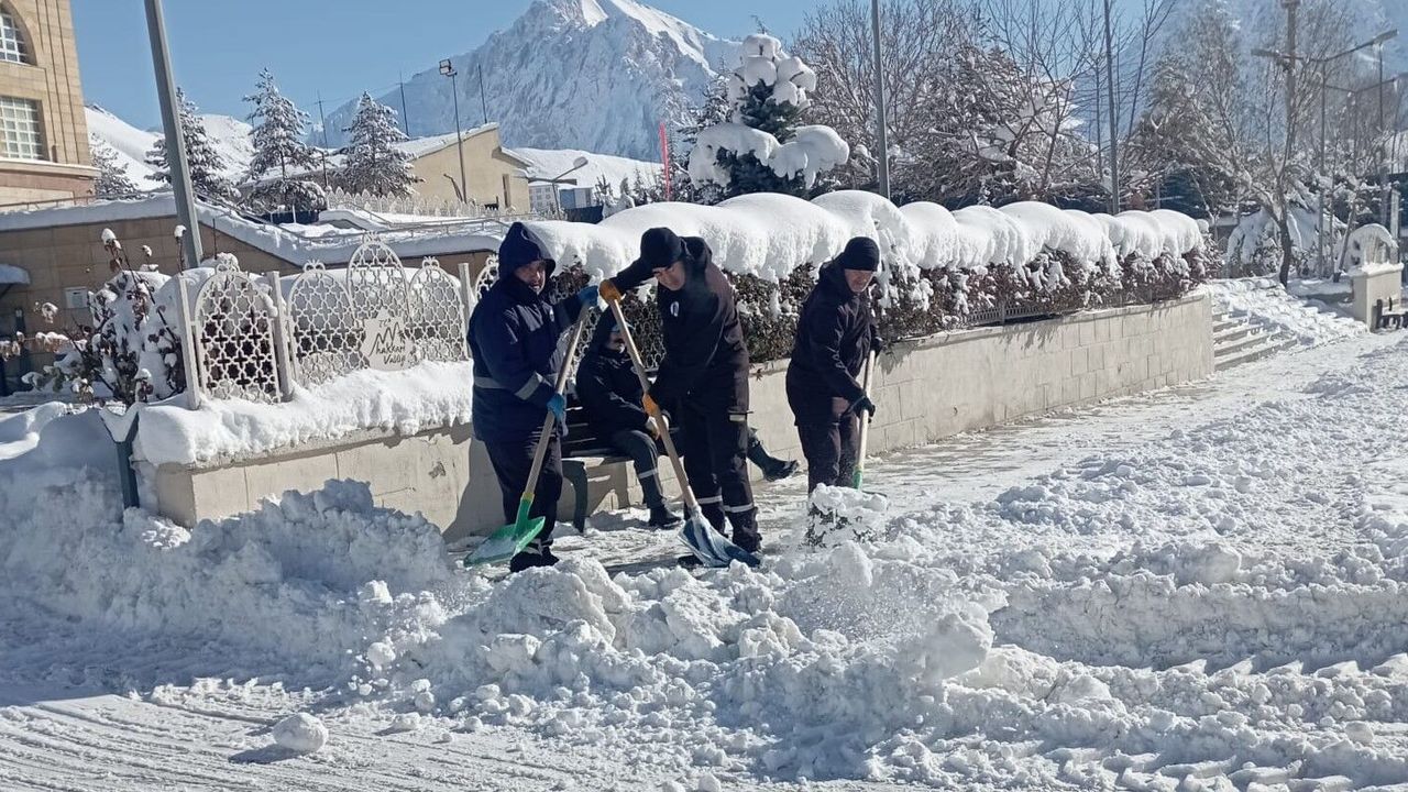 Hakkari Belediyesi koordinesinde karla mücadele çalışmalarını sürdüren Fen İşleri Müdürlüğü ve Temizlik İşleri Müdürlüğü kar timlerince ana arterlerde tuzlama ve kar küreme çalışmaları yapılırken, yayaların kullandığı kaldırımlar ise ekipler tarafından küreklerle temizlendi. Karla mücadele çalışmaları 29 iş makinesi ve 60 personel ile yürütülüyor.
