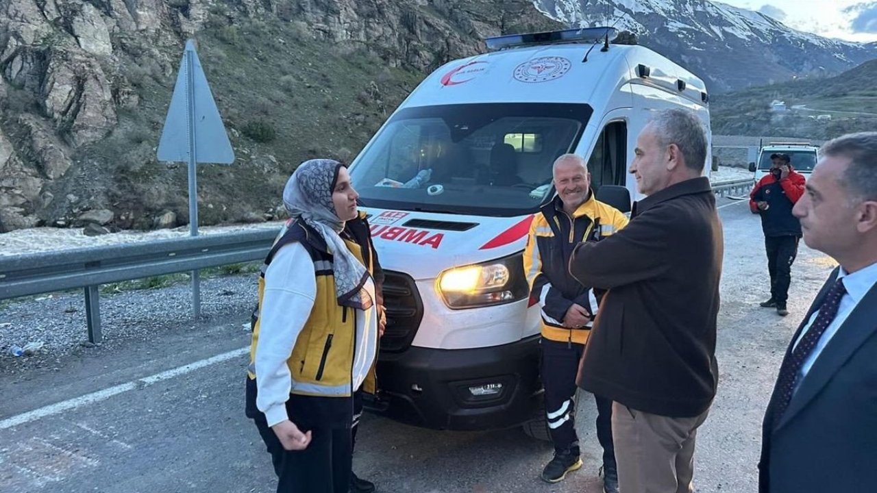 Heyelan nedeniyle bölgede hizmet veren Acil Sağlık Hizmetleri İstasyonu’nda incelemelerde bulunan İl Sağlık Müdürü Kara, görev başındaki sağlık personeliyle bir araya gelerek yürütülen çalışmalar hakkında bilgi aldı.