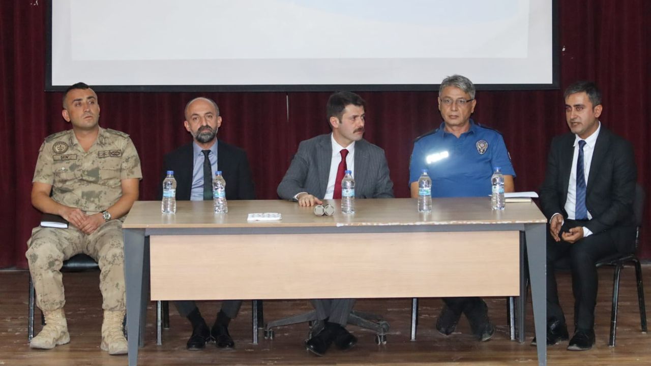 İlçe merkez halk eğitim merkez müdürlüğün konferans salonunda düzenlenen toplantıda kaymakam Cebeci okulların ve öğrencilerin güvenliği eğitimle ilgili birçok konular ele alındı.