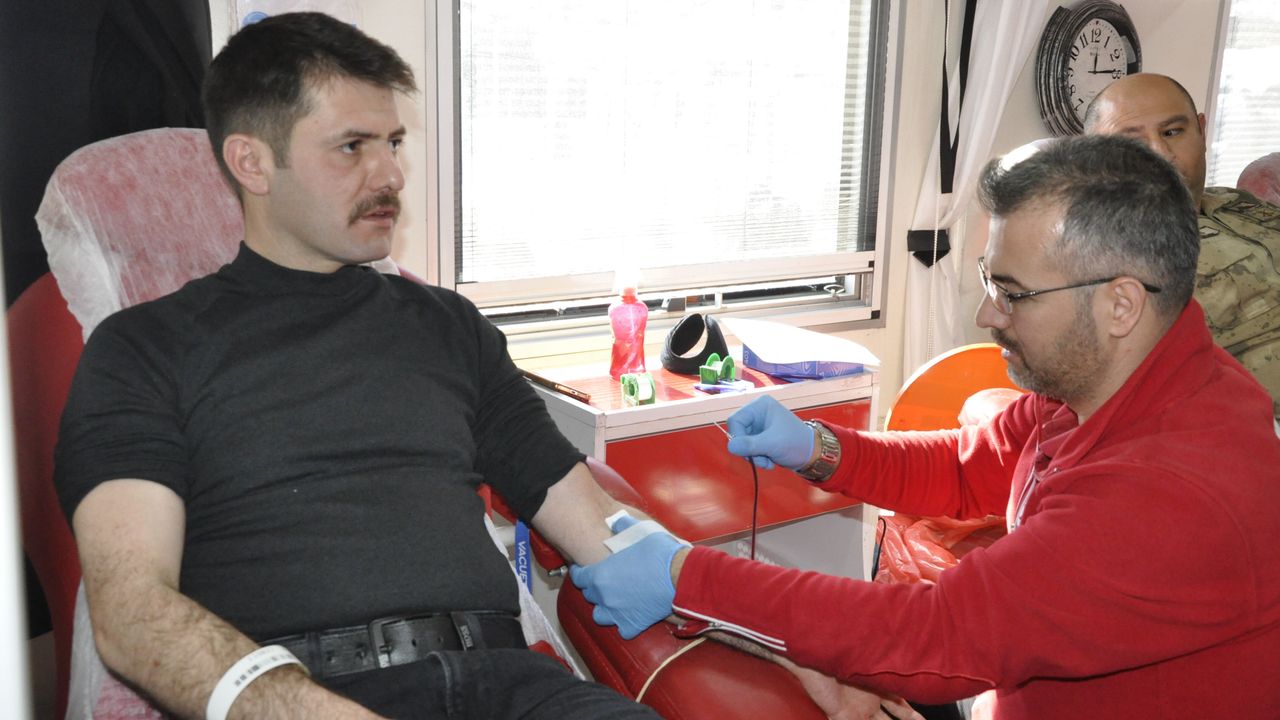 Kan bağışına ilçe de görev yapan askerlerde katıldı.