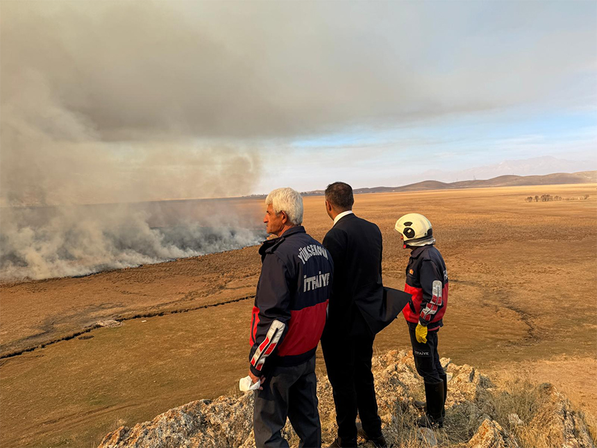 İlçenin kuzeybatısında yer alan ve “Kesin Korunacak Hassas Alan” ilan edilen Nehil Sazlığı’nda henüz belirlenemeyen bir nedenle çıkan yangın, geniş bir alana yayıldı. Bataklık yapısı nedeniyle itfaiye ekiplerinin karadan müdahalesi sınırlı kalırken, bölgeye gönderilen yangın söndürme helikopteri Dilimli Barajı’ndan aldığı suyla alevleri kontrol altına almaya çalışıyor.